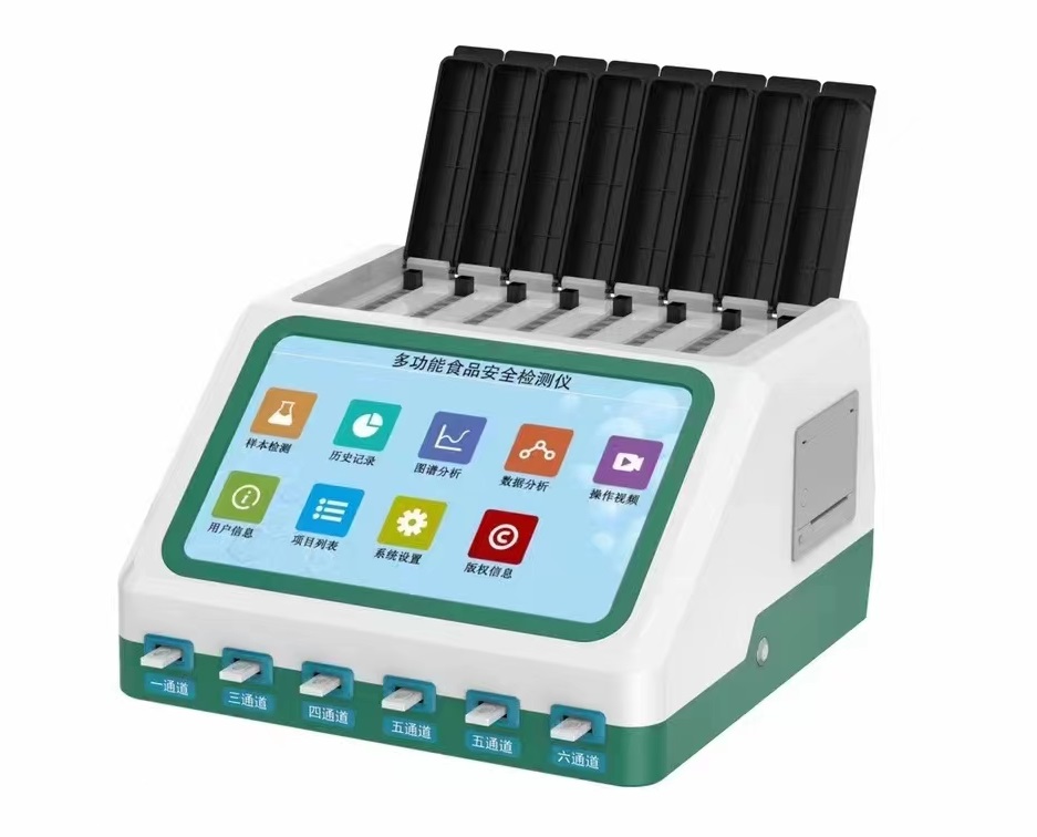食品安全檢測儀深芬儀器研發(fā)生產(chǎn)的CSY系列食品安全測定儀能夠快速檢測食品色素(檸檬黃、日落黃、胭脂紅、莧菜紅、誘惑紅、亮藍(lán)、赤蘚紅)、病害肉(組胺檢測、揮發(fā)性鹽基氮含量、肉類細(xì)菌毒素)、重金屬(鉛、汞、鉻、 砷、鎘)、蛋白質(zhì)、粗蛋白、茶多酚、甜蜜素、安賽蜜、吊白塊、淀粉含量、二氧化硫、二氧化氯、過氧化氫(雙氧水)、過氧化值、食用油酸價(jià)、食品甲醛、醬油氨基酸態(tài)氮、醬油中食鹽、醬油中鐵強(qiáng)化劑、醬油總酸、食醋總酸、食鹽碘、蜂蜜水分、蜂蜜酸度、蜂蜜中果糖葡萄糖、羥甲基糠醛、飴糖、蔗糖、硼砂、亞硝酸鹽、亞硫酸鹽、亞鐵氰化鉀、硝酸鹽、工業(yè)火堿(氫氧化鈉)、過氧化苯甲酰、面粉中溴酸鉀、面中鋁、明礬、苯甲酸鈉、焦磷酸二氫鈉、硫氰酸鈉、山梨酸含量、山梨酸鉀、苯甲酸鈉、糧食新鮮度、味精谷氨酸鈉含量、味精硫化鈉、葡萄酒中鐵含量、真假葡萄酒、糖精鈉、芝麻油純度、甲醇含量、乙醇、堿性橙II、脂肪含量、豬油中丙二醛含量、三甲胺、蘇丹紅、羅丹明B、食品中孔雀石綠中的含量;以及其他食品安全有毒有害物質(zhì)項(xiàng)目進(jìn)行快速檢測,并且可以和多功能食品安全監(jiān)控系統(tǒng)。用戶可根據(jù)自己的實(shí)際需求,從中任意選擇單一項(xiàng)目或者多種項(xiàng)目組成食品安全檢測儀。